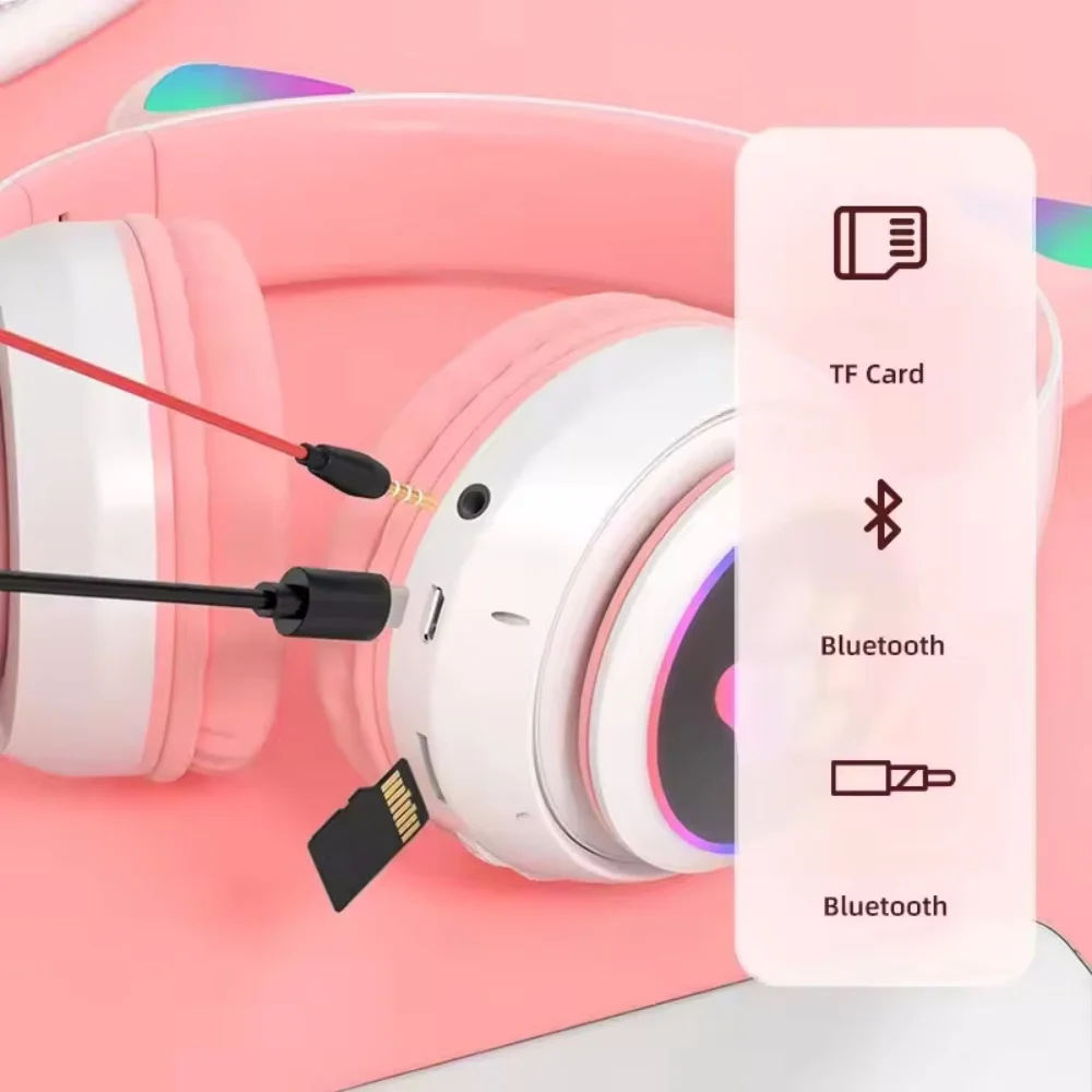 Audífonos de Gatito con Orejas LED: Bluetooth 5.0, Sonido Estéreo y Micrófono (Regalo Ideal)